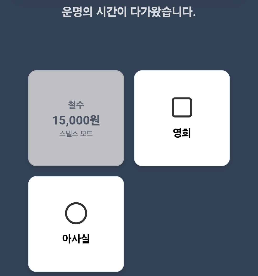 2. 카드 선택 – 각자 운명을 고릅니다